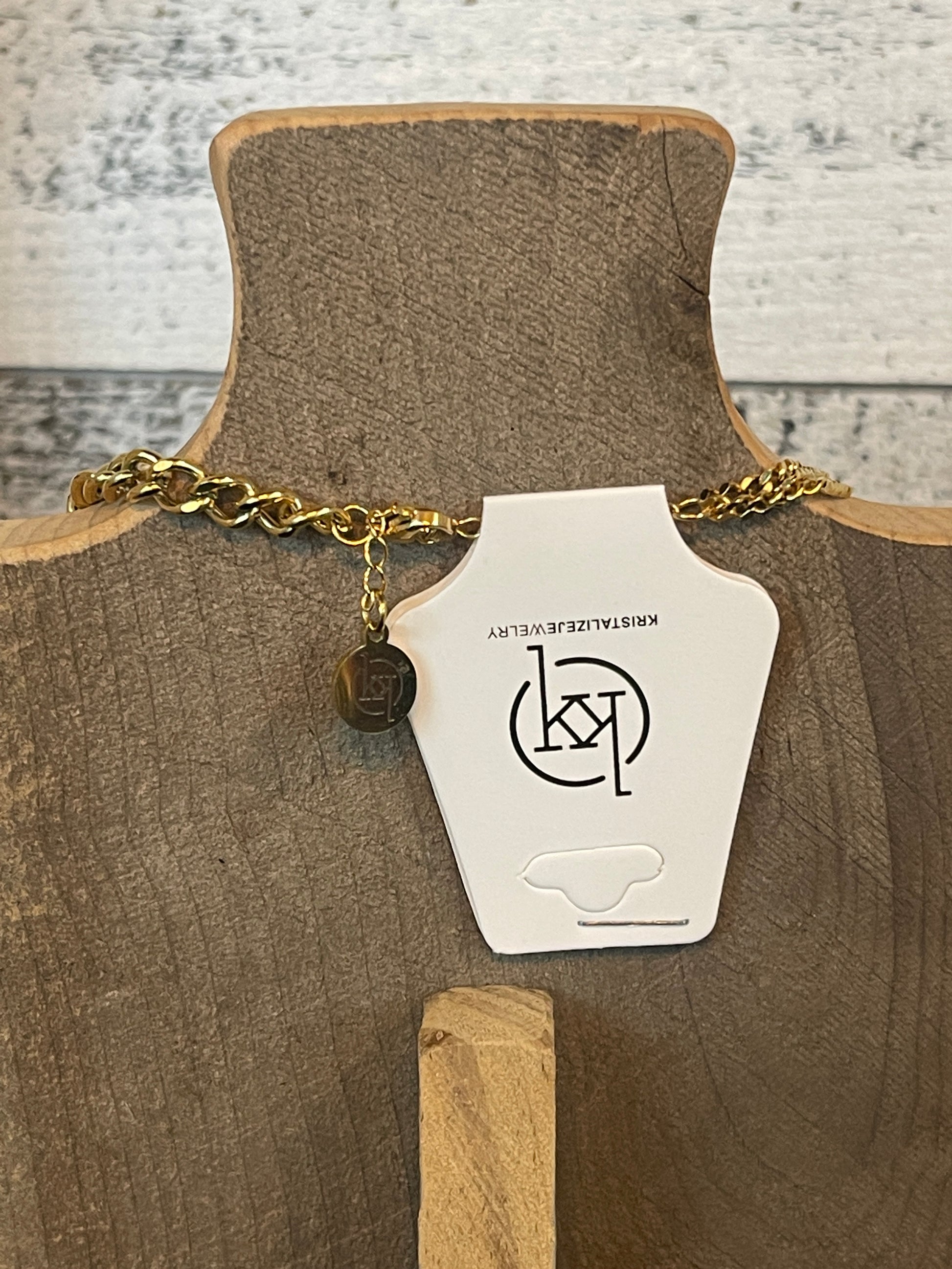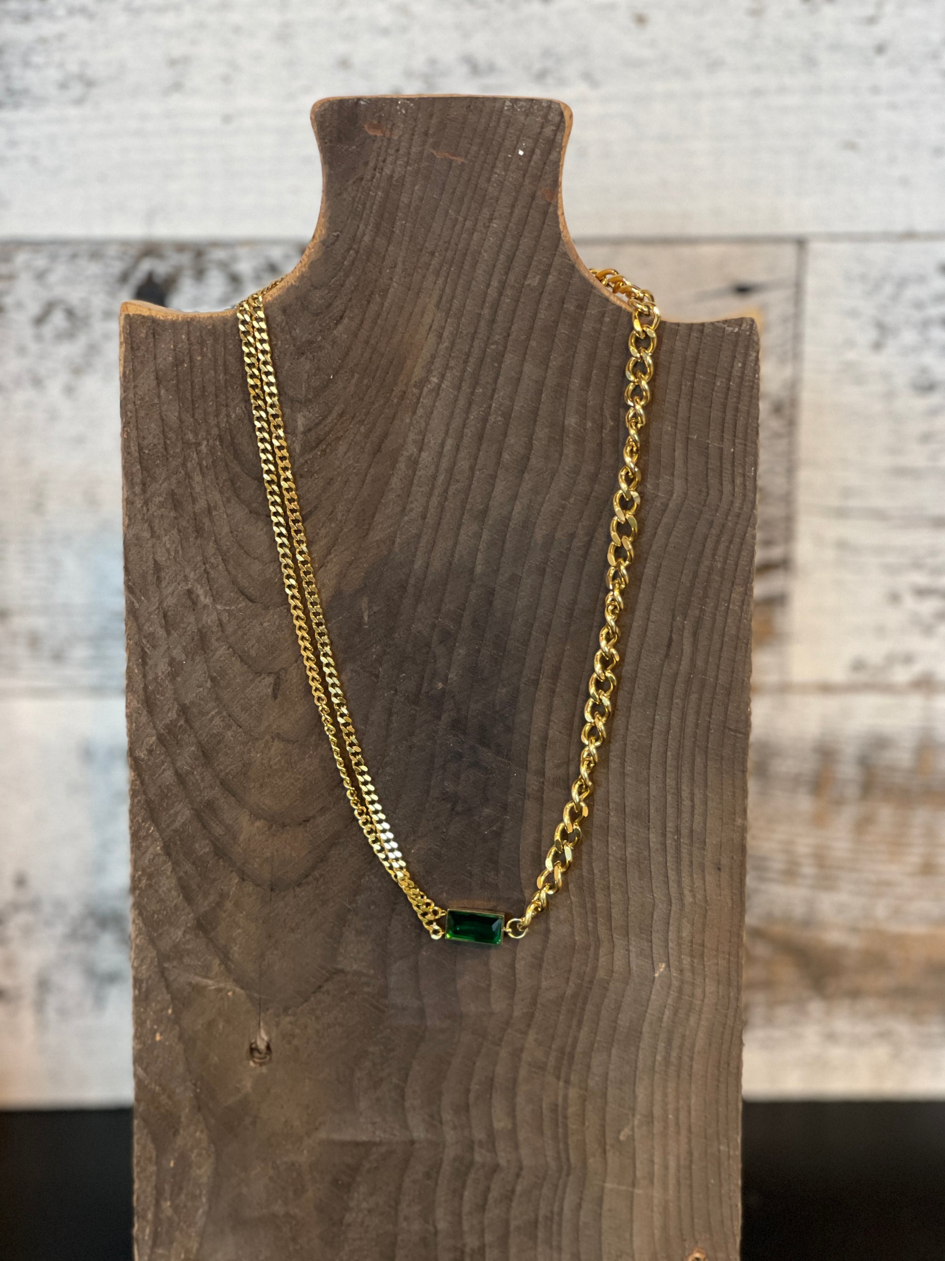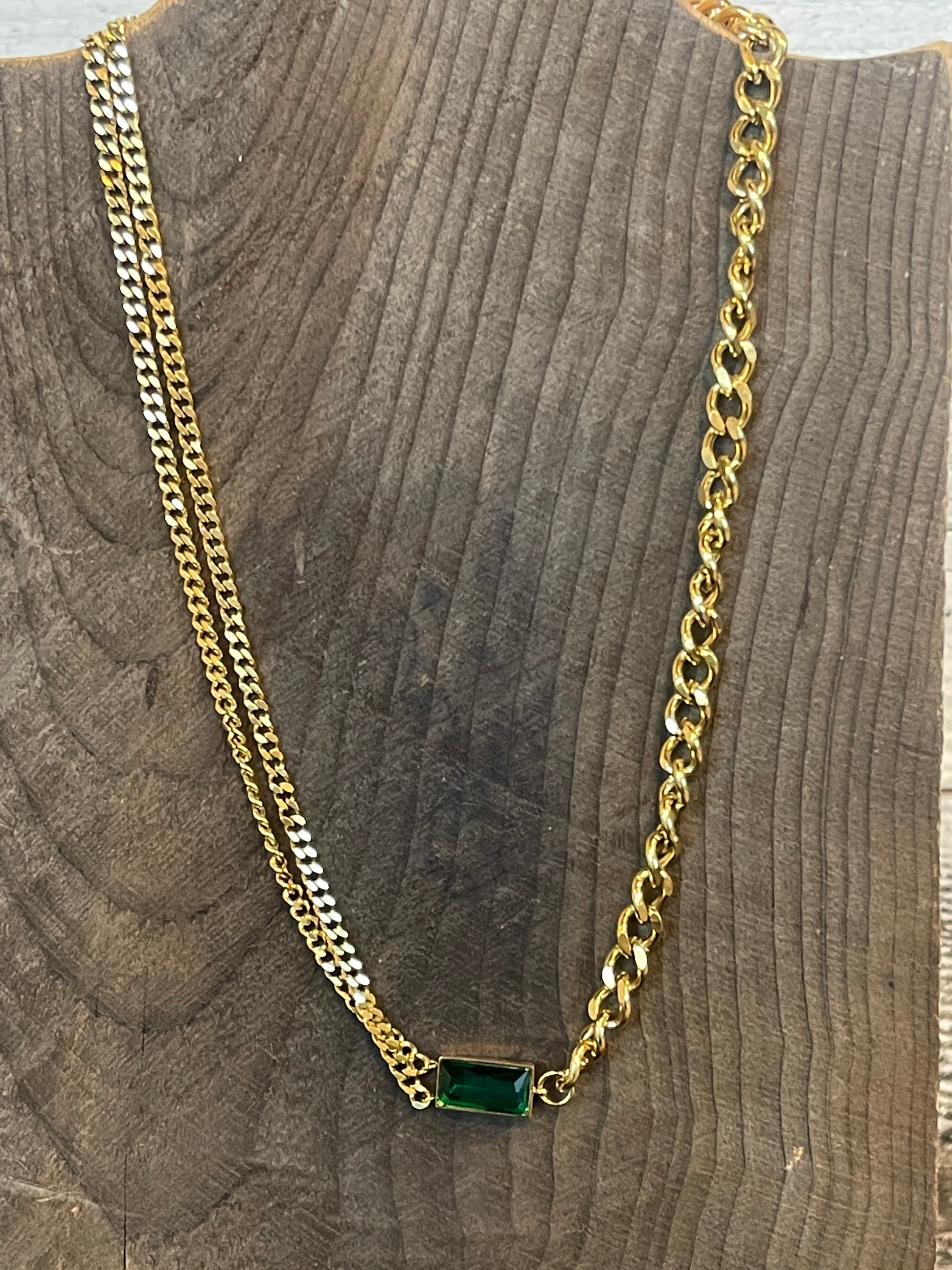 Stainless steel, 18k gold plated adjustable emerald pendant necklace.