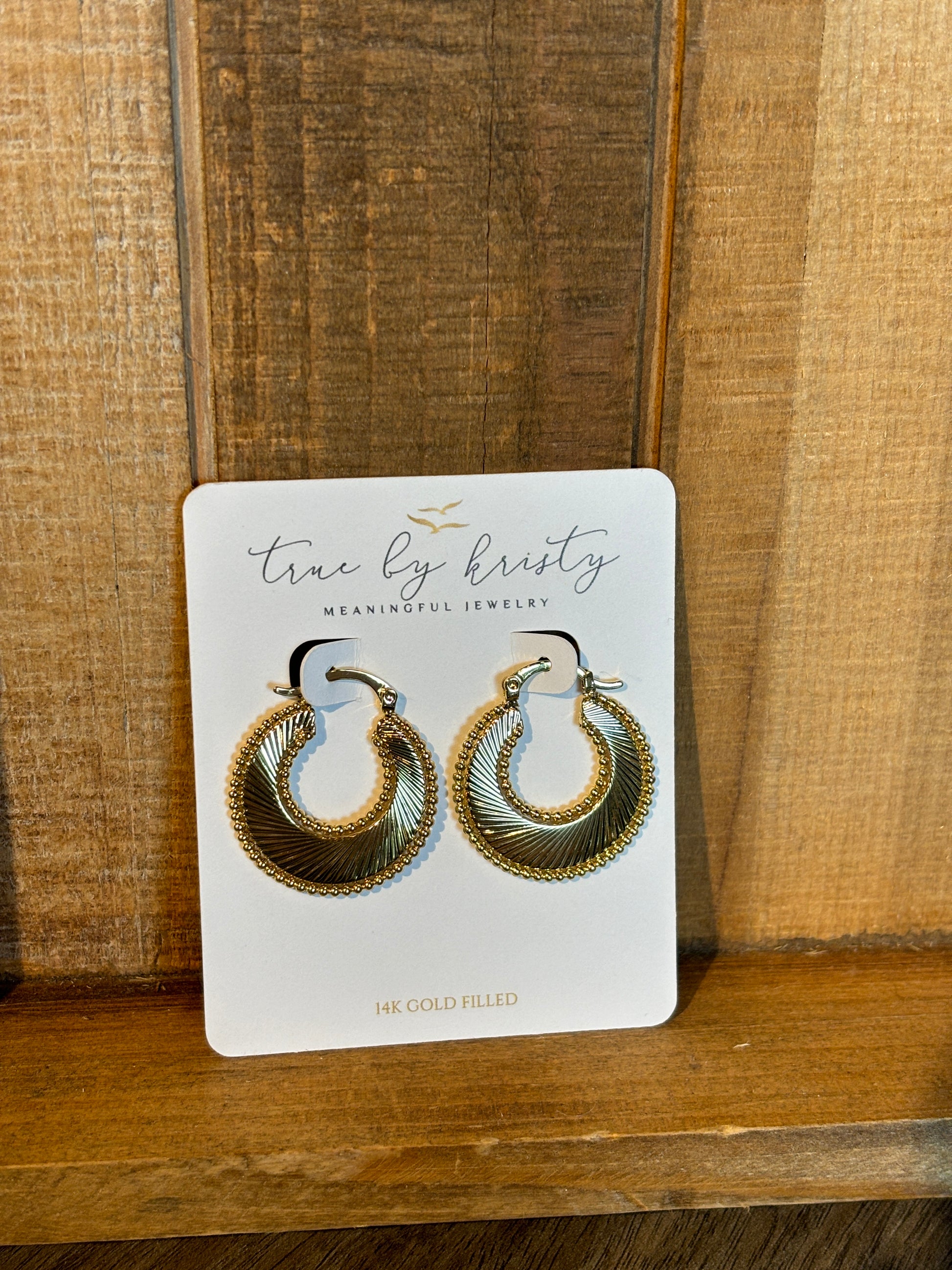 High quality 14k gold filled spiral, textured hoop earrings with hinge backing. Lightweight. Size: 30mm. Lead & nickel free, hypoallergenic, includes organic cotton jewelry gift pouch. These earrings are high quality and will not tarnish, peel or rust. Gold filled jewelry can handle getting wet however, to prolong its beauty and overall longevity, here's what we recommend: