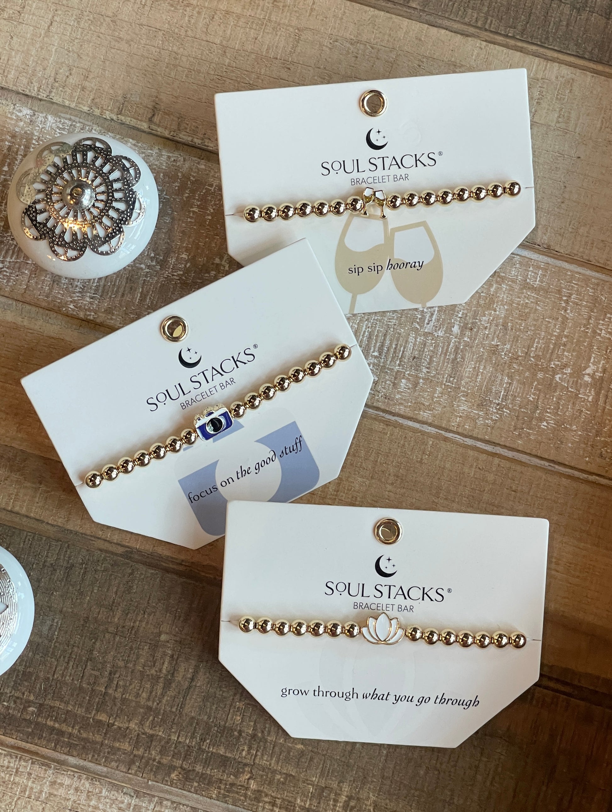 The absolute cutest, stackable bracelets! Customize your stack with a letter, number, or cute icon. Made with high quality gold tone beading. Options: 20 custom enamel + crystal icons.