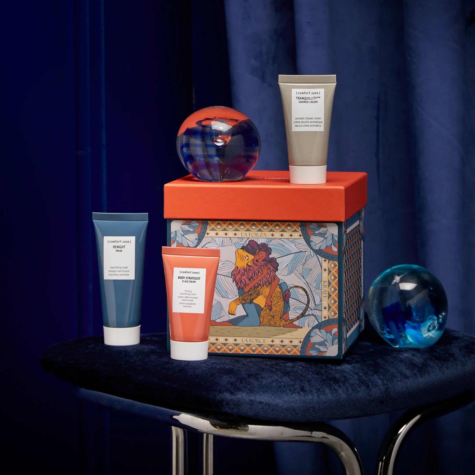 A nourishing and firming face and boy routine, this kit is perfect for you. Cleanse and scent your skin with Tranquillity™ Shower Cream, firm your skin with Body Strategist D-Age Cream, and finally promote a relaxed feeling with Renight Mask vitamin nourishing face mask.