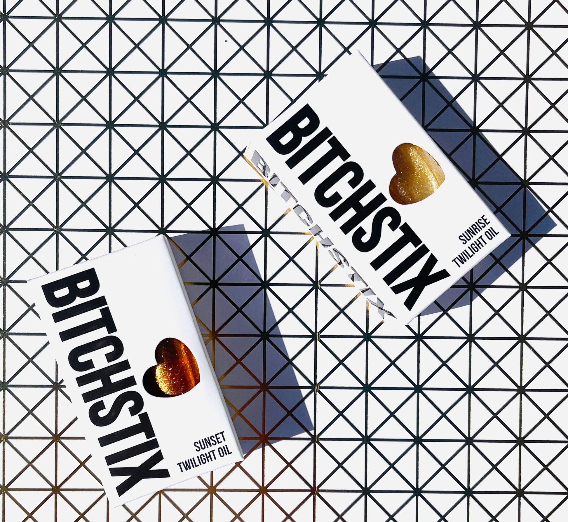 Bitchstix Twilight Oils are silky luxe body oils that quickly absorb and leave your skin glowing, velvety soft and with a shimmering golden glow. Formulated with a blend of naturally derived oils, Bitchstix Twilight Oils work harmoniously to enhance skin texture and provide long lasting hydration. Meadowfoam Seed Oil, contributes to improved skin moisture and strengthens the skin barrier. The combination of Grape Seed Oil, Pomace Olive Oil, Jojoba Oil, and Sunflower Oil brings a rich infusion of Vitamin E and antioxidants, providing nourishment and additional radiance. These multi- use oils can be used on face, body or even your hair to add a touch of golden pearlescence!